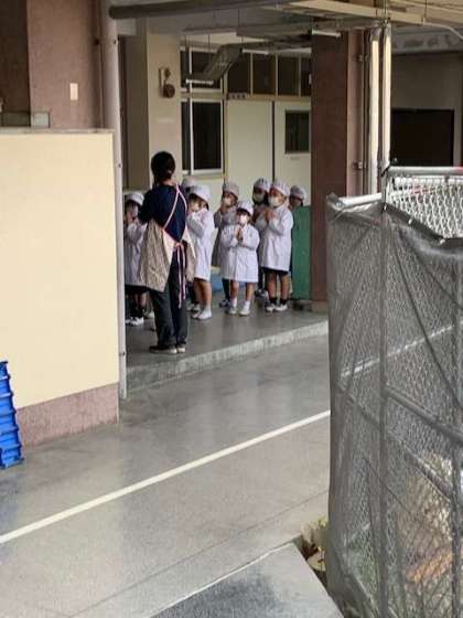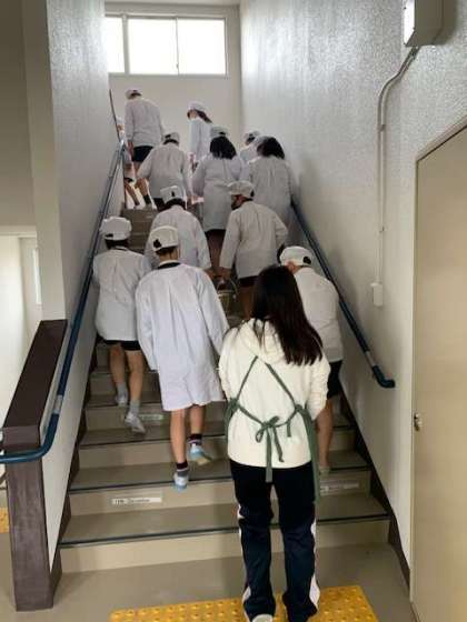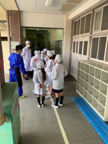 先週の班と違う、新しい班での給食当番です。やはり慣れるまでは行き方や運び方に戸惑う子どもたち。