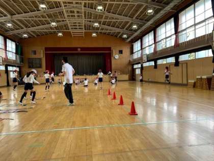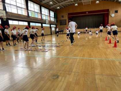運動場が使えないので、体育館で換気をたくさん行って体育をしています。