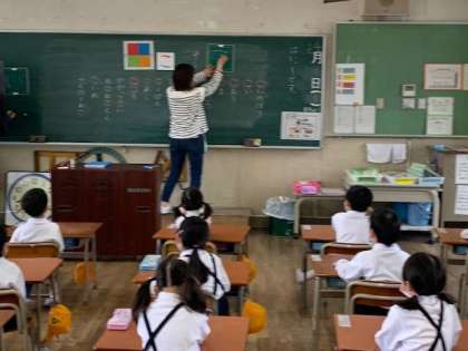 書き順やマスのどのあたりではねるのかを確認です。子どもたちは、毎日どんどんと新しいことを覚えていきます。