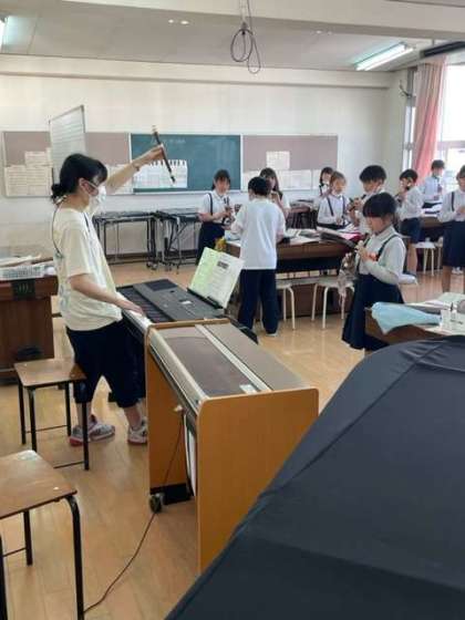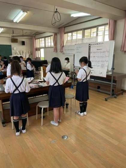 リコーダーの「ラ」「シ」の音階で、いろいろなメロディーを演奏しました。