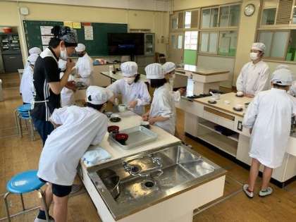 調理実習として、お茶のいれ方を学習しました。最近は、なかなかペットボトルで買ってくることもあり、家で入れている経験をしていることが減っているようです。