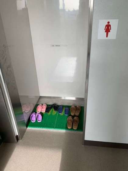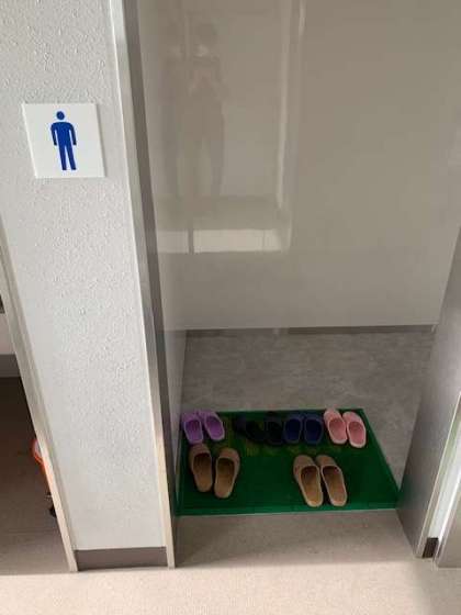 男の子は、女の子は、「この色」だという固定概念をできるだけ減らしていきたいと、様々な色をあえて男子トイレと女子トイレに置いています。