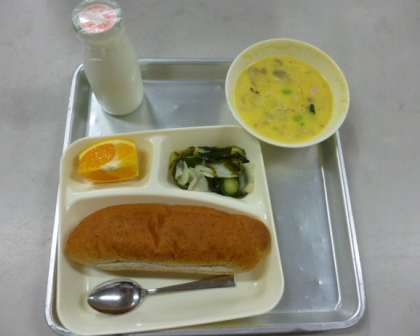 かぼちゃのクリームシチュー ミックス海そうのサラダ オレンジ