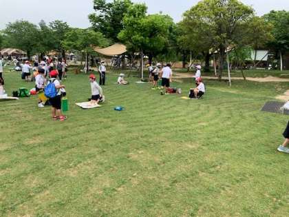 待ちに待った、お弁当タイムです。黙食で、一人一人間隔を空けて食べます。