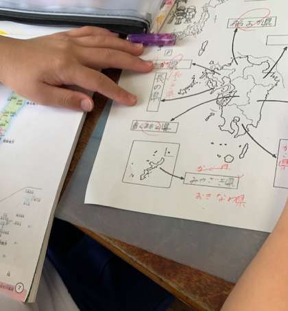 都道府県名を覚えています。どこに何県が存在するのか、しっかり定着してほしいと思います。