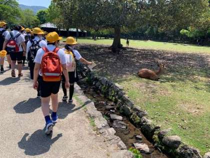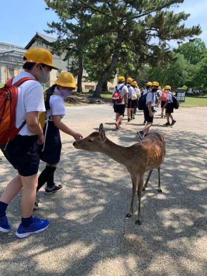 鹿とも遭遇し、子どもたちは興奮ぎみです。
