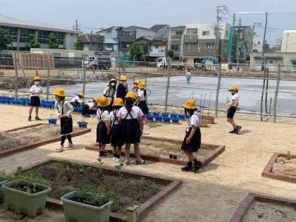 きょうだい関係のある子は、「これは家で、お話に出ていた植物。」と友だちと話しています。