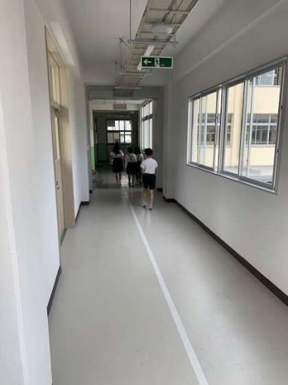 あるクラスの歩き方を見ていると、子どもたちが右側通行の約束を守って「歩いて」いました。