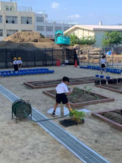 今日もせっせと子どもたちは、朝の水やりに励んでいます。