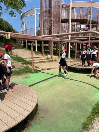 馬見丘陵公園内の遊具で思い切り遊びました。
