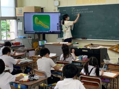 虫の観察の学習です。学習園にいた幼虫も実際に見ながら、進めています。