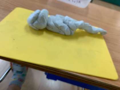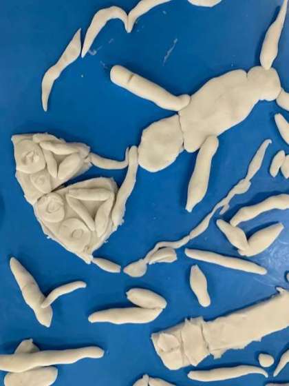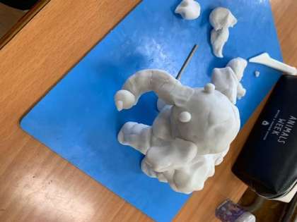 教室に入ると、2年生が粘土で作品を作り上げていました。