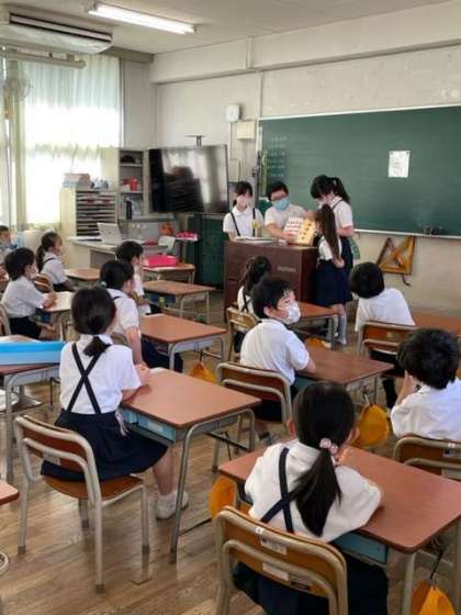 今日は、図書委員会の児童が、低学年の教室に行って、本の「読み聞かせ」を行いました。
