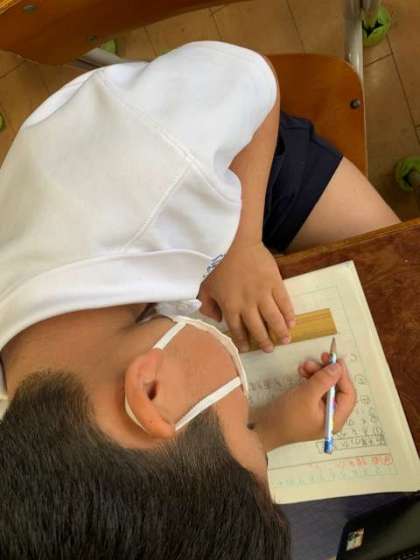 「直線をひこう」と竹ものさしを使って学習していまふ。