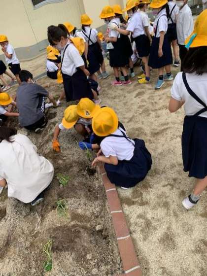 少しずつの作業ですが、子どもたちは楽しそうに植えていきます。