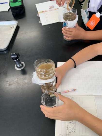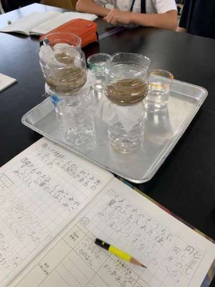 土の種類と水の染み込み方はどのように違うのか、実験です。
