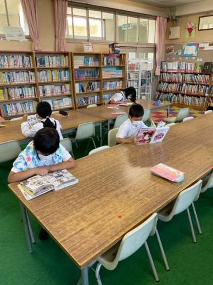 好きな本を選んで本の世界に浸ったり、友だちと一緒に読書スペースで過ごしたり、思い思いに読書活動を楽しんでいました。