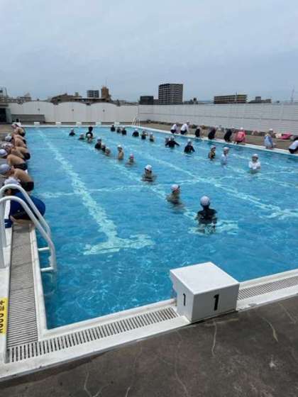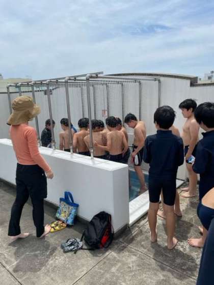 今日、まず最初にプールに入ったのは5年生でした。