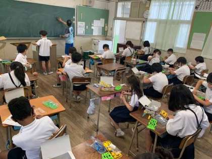 電気のはたらきについて学習しています。今日は回路作りです。ていねいな作業が、完成した時に電気が通ることに繋がります。