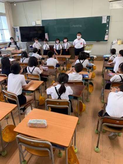 朝は、各学級で朝の会が行われています。日直や司会が健康観察や今日の行事の確認などをしていきます。