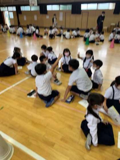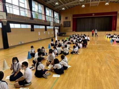 昨日の1年生と6年生の集会に引き続き、今日は、2年生と4年生ペア学年での集会です。