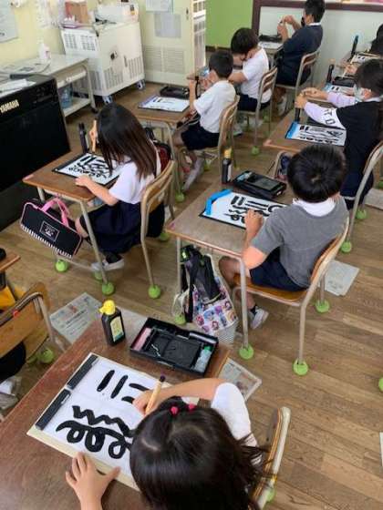 今日は、3年生が初めて毛筆での書写に取り組みます。