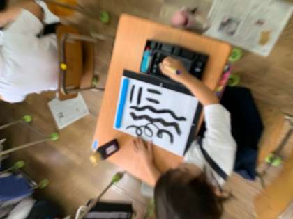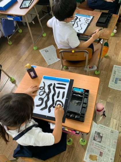 墨の出し方や量、持ち物を机のどこに置くのか、座り方、手の置き方、筆の使い方と細かいようですが、最初が肝心です。