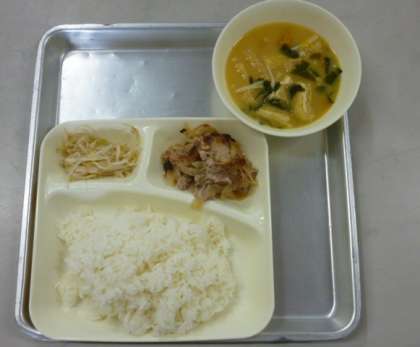 豚肉の甘辛焼き  みそ汁 もやしのごま酢あえ  ごはん  牛乳