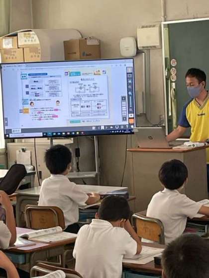 大型モニターで動画を見ながら実験の結果を確認しました。