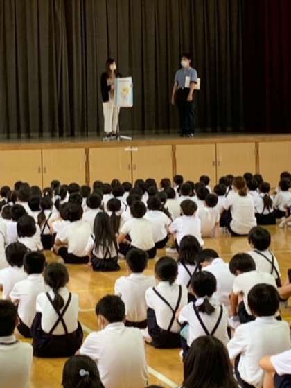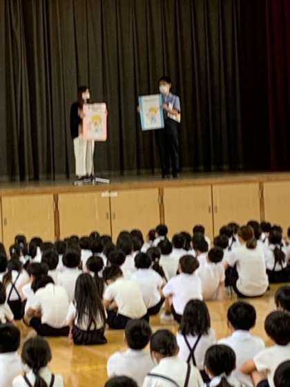 今朝は、養護教諭と栄養教諭が健康についてお話をしました。