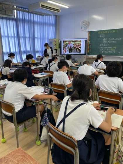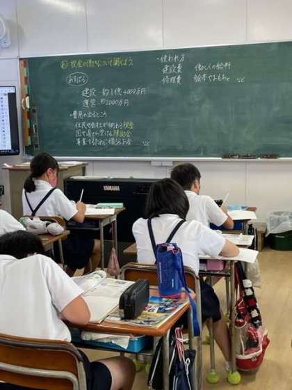 税金がどのように使われているのか、大型モニターでインタビューの様子なども見ながら学習しました。