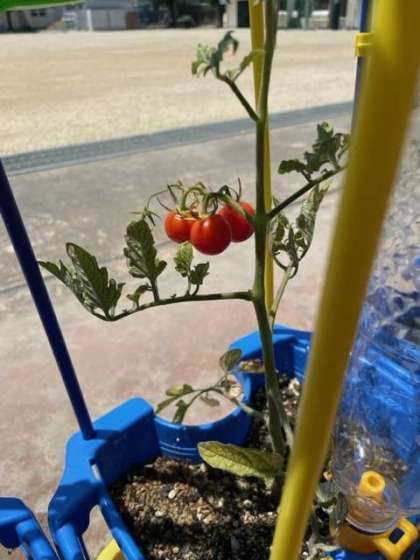 ミニトマトの成長の様子を観察しました。