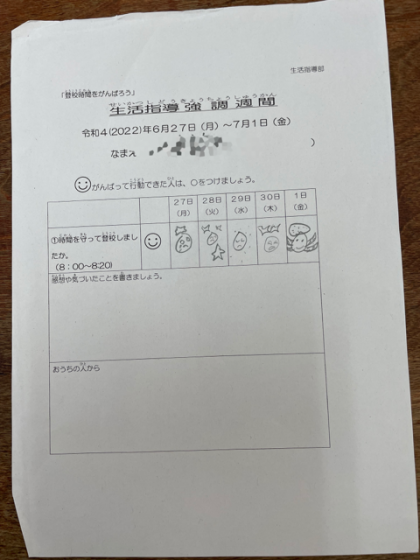 強調週間が終わっても、がんばって早起きを続けてほしいと思います。