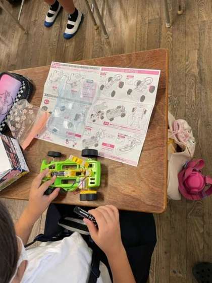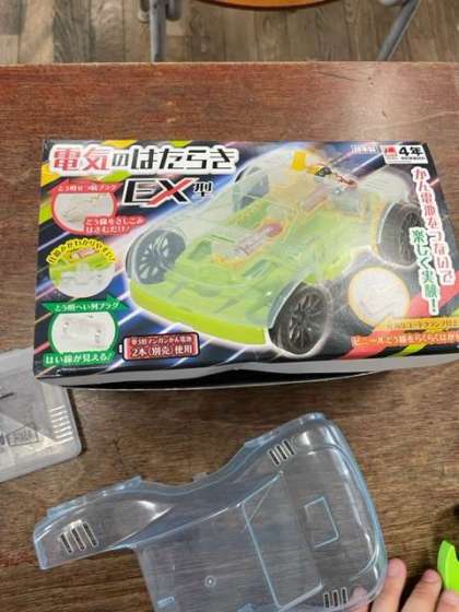 うまく作れた児童は、楽しそうに教室で車を走らせていました。