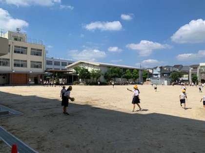 昨日は、教職員が付き添いのもとでの運動場でしたが、今日は子どもたちだけでも初めての運動場使用です。