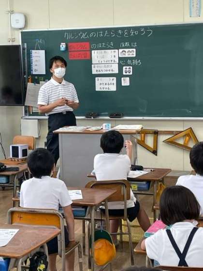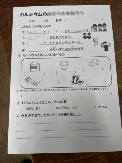 カルシウムが骨や歯を丈夫にしたり、気持ちを落ち着かせたりするはたらきがあることを学習しました。