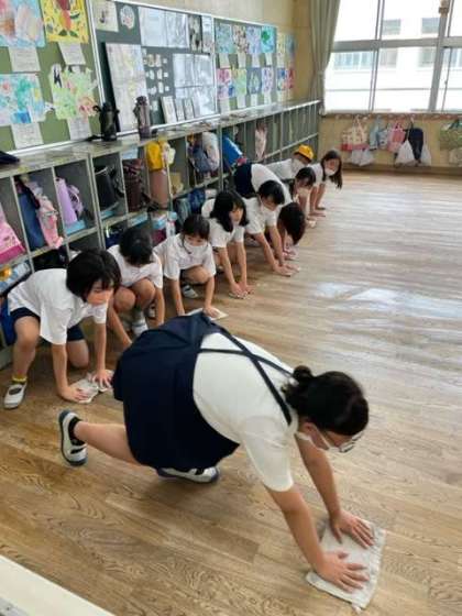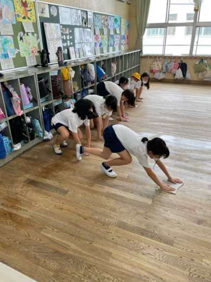 床の雑巾掛けも行って、教室内がピカピカになりました。