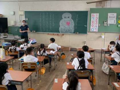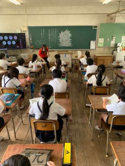 夏休みを終え、今日から二学期です。先生方の黒板にも力作が見られます。