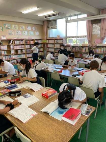新しい単元に入り、難しい言葉を国語辞典で調べました。図書館で落ち着いて学習する様子は、さすが6年生だと思いました。