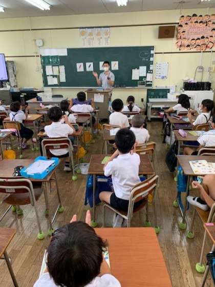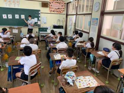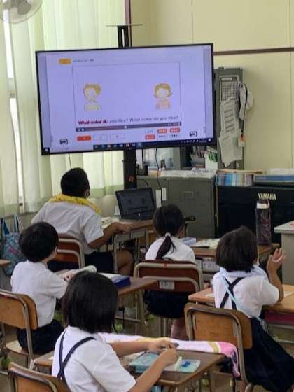 3年生の教室に、英語が飛び交っています。