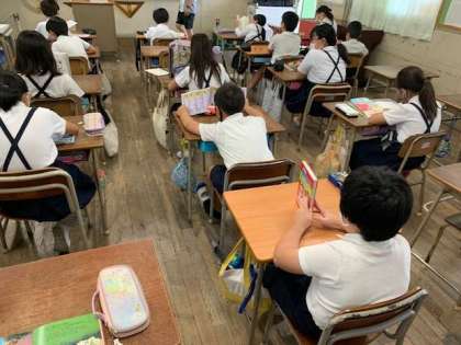 毎週水曜日の朝は、「朝読書」の時間です。子どもたちが思い思いの本等を読んでいます。