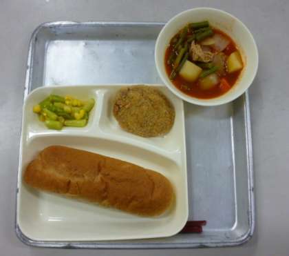 チキンレバーカツ ケチャップ煮 グリーンアスパラガスのサラダ