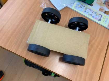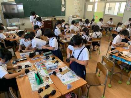 動く動くわたしのおもちゃという単元で、ヨットカーを作ろうと教育実習生が前に立って授業をしました。