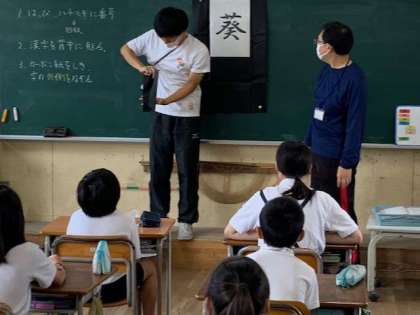 今日は初日です。それぞれが考えた、漢字一文字を背中に記すために下書きを行います。