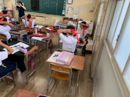 運動会で披露する「ソーラン節」の衣装も兼ねて、図画工作科で製作に取りかかります。