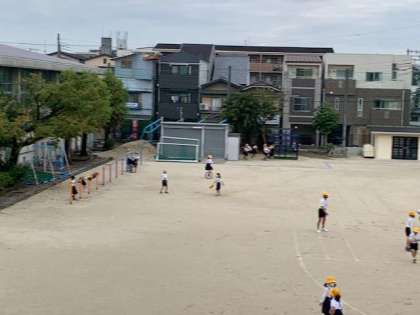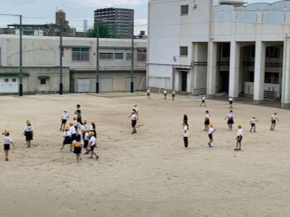 朝登校して、準備の終えた子どもたちが運動場に飛び出していきます。