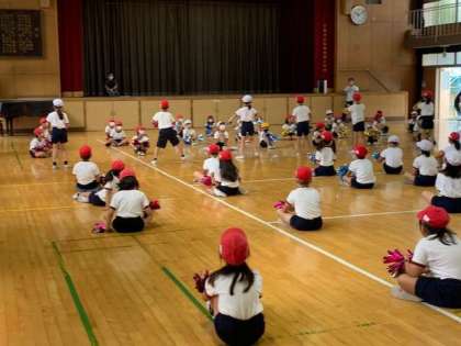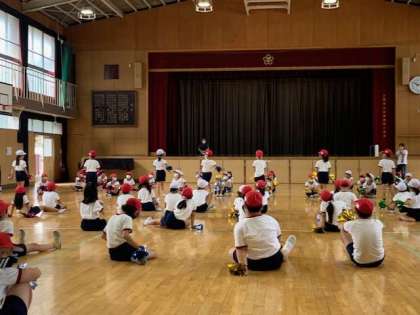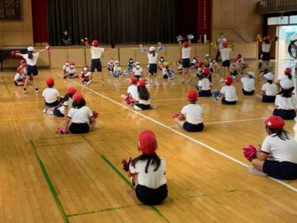 2年生でも、運動会演技をみんなで見合いっこしています。