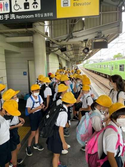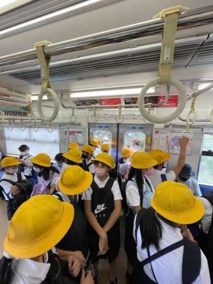 本日は、5年生が「ハグミュージアム」まで、社会見学に行きます。