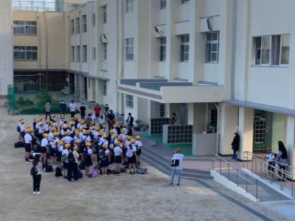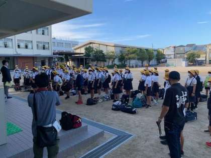 修学旅行出発の朝です。