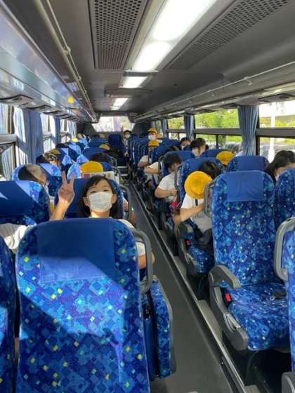 「出発式」を終えて、バスに乗り込み、いよいよ出発です。